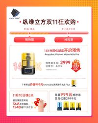 关关 · 2023-11-10 16:58 - 36名半价购机名额!纵维立方预售新品、爆款3D打印机双11狂欢购